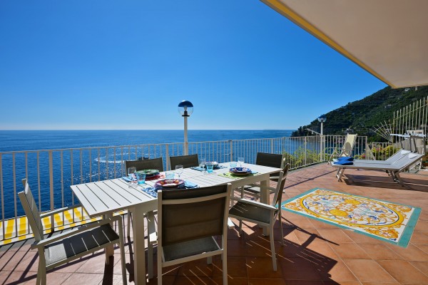 Along the amalfi coast roads, on the sea. The apartment enjoys a spectacular 180° sea view, with a large terrace where you can spend your days enjoying the incredible panorama.